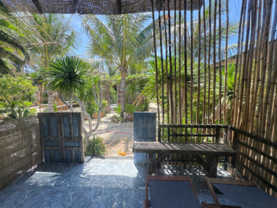 Nếu hầu hết các phòng nghỉ tại biển Hải Tiến có diện tích tiết kiệm và chỉ có cửa sổ, thì phòng hướng sân vườn của Queen Hotel lại có hẳn ban công rộng rãi, với view nhìn ra rừng phi lao bao xung quanh khách sạn, tạo cảm xanh mát và gần gũi với thiên nhiên. Hãy thử cảm giác ngồi thưởng trà ngoài ban công phòng hướng vườn của Queen Hotel và tận hưởng từng làn gió mát lành, mang hương vị đặc trưng của biển Hải Tiến. Ở đây bạn còn có thể nghe rõ tiếng sóng biển rì rào, cùng với tiếng lá xào xạc của rừng phi lao.